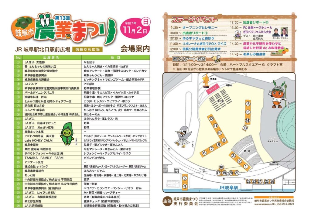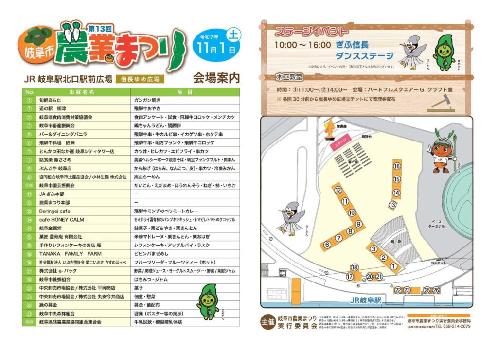 第13回岐阜市農業まつりを、「ぎふ信長まつり」と共同開催し、「岐阜市産業・農業祭~ぎふ信長まつり~」として開催します。